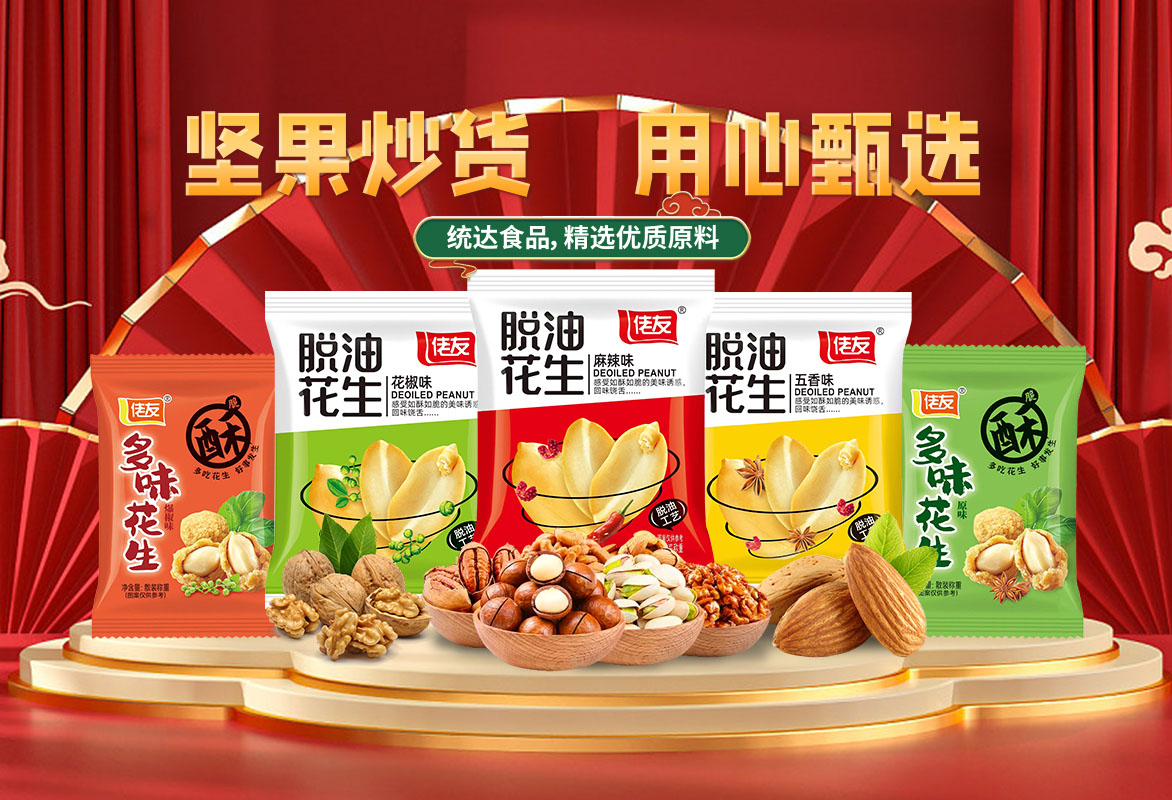 洛陽市統達食品有限公司創建于2013年,坐落于風景秀麗的嵩山腳下,東依省會鄭州、隴海、焦枝兩大鐵路在此交匯,西連高速,洛界高速,縱橫東西南北,207國道,交通便利。當地環境優美。經濟繁榮昌盛,實為興業辦企,鴻運福順的好地方。少林寺,白馬寺,龍門石窟,玄奘故里等名勝古跡星羅棋布,近在咫尺,盡展千年華夏文明?! ∥覐S是一家集生產,研制,銷售為一體的食品加工企業,總投資1500萬元,廠房占地面積5000平方米,員工100余人,其中技術人員20余人,年加工能力達1500余噸。公司以堅果炒貨為主導,自主三大品牌:統達牌、紅仁館牌、佬友牌和授權品牌速達,主要產品有酒鬼花生系列,麻辣花生系列,香辣酥系列,果仁裹粉類系列,怪味胡豆系列,蠶豆、青豆系列等多個品類。產品暢銷全國各地,深受用戶好評。產品選自上等原料經多次精選而制,秉承濃郁的特色風味,保留其原材料的營養和原汁原味,富含不飽和脂肪酸和人體必需的氨基酸和鋅元素,不含膽固醇,黃曲霉素,不添加防腐劑、著色劑;具有濃郁獨特的香味,是真正的“從土地到餐桌”的健康食品。產品特點:色澤金黃,顆粒飽滿,然后經多種工藝加精良的天然配料精制而成,鎖生產出來的產品既保持著產品的獨到的口味,又不失產品天然的營養成分,滋味純正,辣椒鮮紅食之麻,辣,香,酥,甜,口感獨特,食后滿口生香,欲罷不能。久食不厭,老少皆宜,居家旅游,佐食配茶,宴賓饋友之佳品,深受廣大顧客歡迎和贊揚?! ∥覀儗⒁跃康墓に?,科學的管理,嚴格的質量控制,優異的品質保障,以誠信,創新,勤奮,求實的企業精神,立于強者之林,迎接新的挑戰。以飽滿的熱情迎接與你的合作。  本公司“以質量求生存,以誠信求發展”歡迎有志之士加入我們的團隊,攜手共創美好明天!